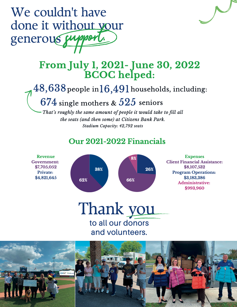 BCOC conducted a community needs assessment in 2024 in accordance with the Community Service Block Grant (CSBG) funding regulations, and in an effort to inform our work in developing strategies to achieve our mission of helping improve the lives of those in poverty in Bucks County.